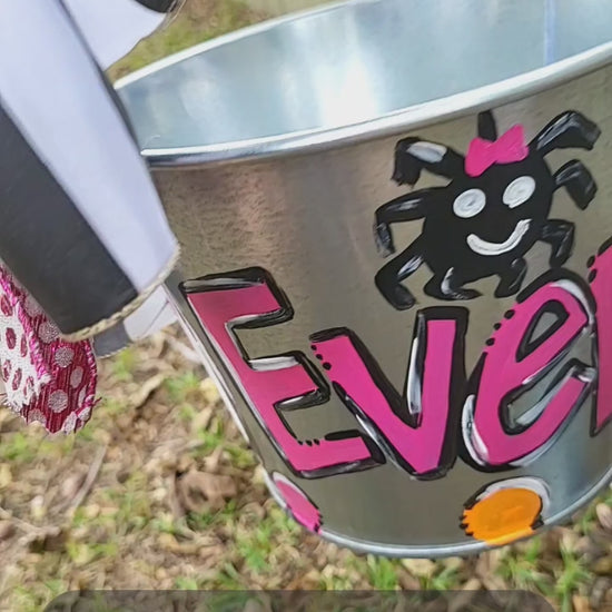 CUSTOM, HANDPAINTED HALLOWEEN BUCKETS- WE CAN DO ANY NAME, DESIGN, COLOR SCHEME, THEME, ETC... WE HAVE DONE HUNDREDS OVER THE YEARS AND WE ARE CANNOT WAIT TO CREATE YOURS FOR YOU!